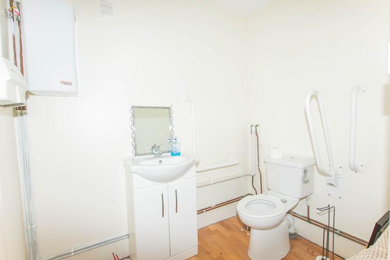 This hallway is located to the rear of the main shopfront. There is a large cupboard that houses the central heating boiler. There is also a useful understairs storage cupboard. As you enter the hallway to the left, steps lead to a door which gives access to the flats. To the right, there is a fire exit that leads into the rear courtyard. Further doors lead to a w.c. and accessible toilet.
