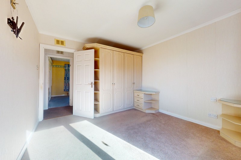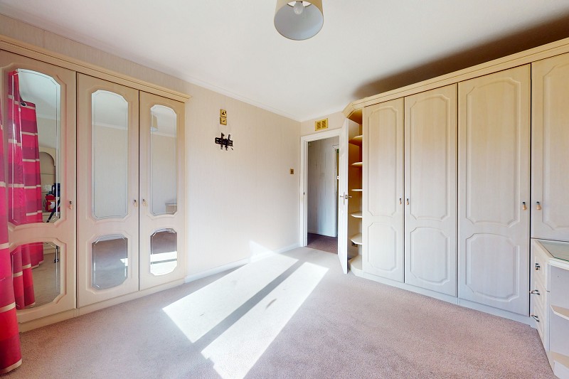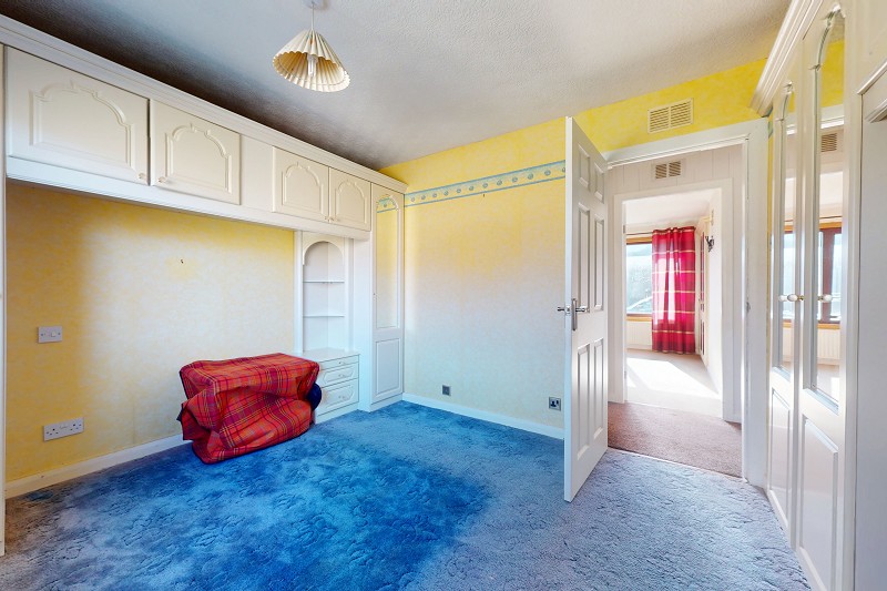 This room has been wall papered and has a window, dressed with curtains, which faces the front elevation. A carpet has been laid to the floor; there is coving and a pendant light fitting. A built in cupboard with both hanging and shelf space, provides storage within the room.