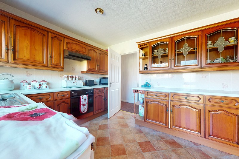 This bright room benefits from coving and is of good proportions. A large picture window, which has been dressed with curtains, faces the front elevation and a carpet has been laid to the floor. A focal point within the spacious room is the tiled fireplace with an insert electric fire. There is a triple light fitting and also double sockets throughout.