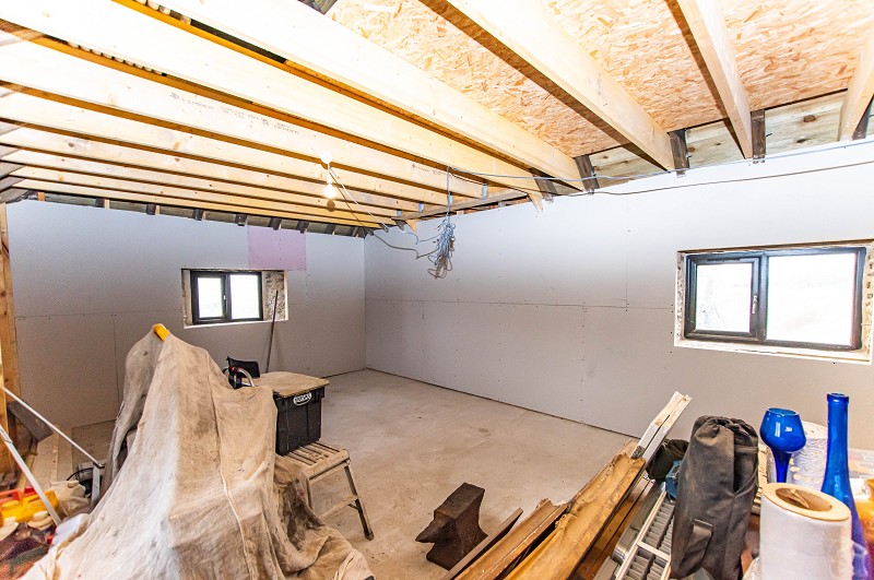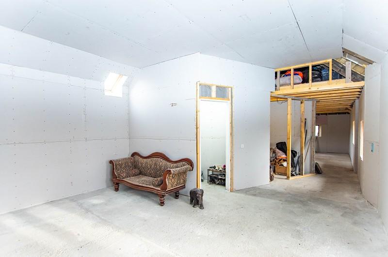 This room is of good proportions. Planning has been granted for two bedrooms, although at present it is one room. The partition wall has been put in with it being plaster boarded throughout. There are triple aspect windows and two pendant light fittings.