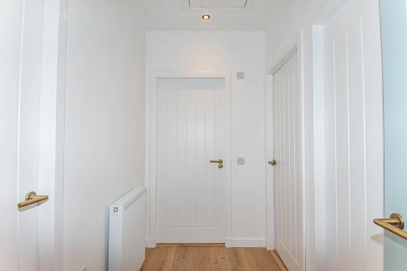 Tastefully decorated throughout, the hallway benefits from oak laminate flooring. There are double sockets, ceiling down lighters and a central heating radiator. A hatch gives access to the attic rooms. Doors lead to the lounge, two bedrooms and the bathroom.