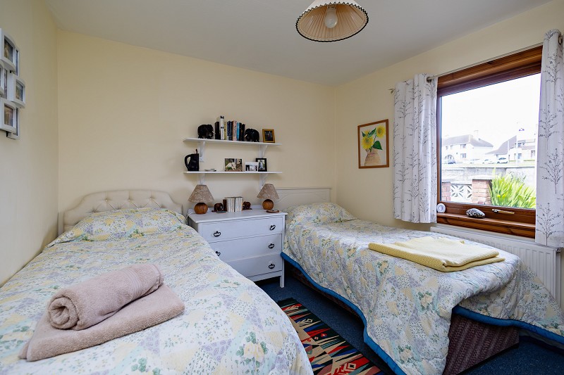 With a window facing the rear of the property this bright room enjoys scenic views over beaches and sea. There is a feature wall-papered wall. Benefitting from build-in wardrobes with bi-folding doors there is both ample hanging and shelving storage. A TV bracket is fitted to one wall and there is also a pendant light fitting and radiator.