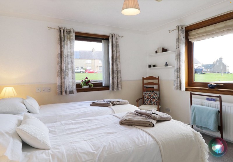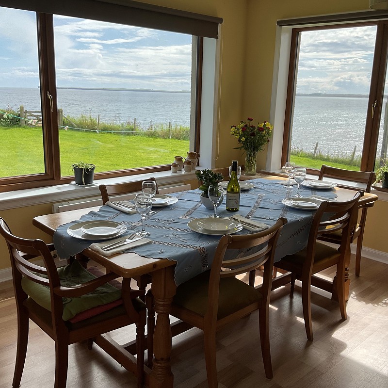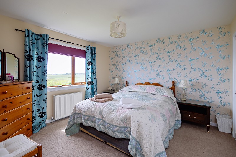 This good-sized dining room has windows facing to the side and rear giving breath-taking views across Keiss and Reiss beaches and out to open sea and to Noss Head. There is a half-glazed uPVC door leading out to the garden, a double radiator, two pendant light fittings and wood effect laminate flooring.