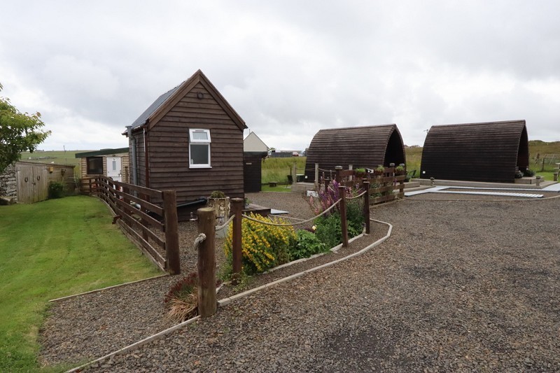 Yvonne Fitzgerald is delighted to bring to the market this fantastic NC500 business opportunity. Situated in four acres of land, which is a registered small holding, is a lovely two-bedroom bungalow with two stone outbuildings either side forming a courtyard with the bungalow, three camping pods, various sheds and a kennels. There are beautiful landscaped gardens and lots of offroad parking to the frontage. To the rear is a large enclosed garden which leads out into the fields. This thriving business is an ideal opportunity for someone to walk-in and take up the successful running of Hillside Camping Pods. Located in Auckengill with views across the open countryside and to the open sea beyond. The owners living accommodation is a bungalow that is accessed through the vestibule and into the hallway which has a built-in storage cupboard. There is a lovely lounge which has a multi-fuel burner set on a Caithness flagstone hearth, french doors lead into the kitchen/diner and then on into the utility room. There are also two double bedrooms and a family bathroom to complete the accommodation which features flagstone floors. There is also full-fibre broadband and attic trusses are in place that would allow expansion to the living space, with the necessary permissions. Situated back from the main road, it is only a very short distance to the top corner of the Auckengill loop road.