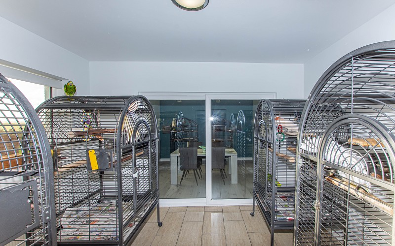 This outbuilding has been plaster boarded and the walls have been painted white, the floor is laid to ceramic tiles, there is a sink and power has been connected to this room. A large picture window faces the front elevation