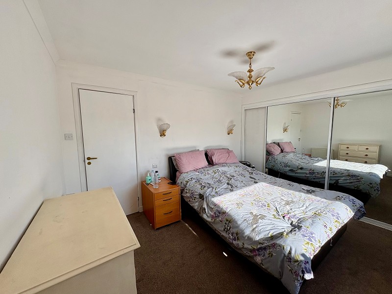 This bright room is rear facing and benefits from mirrored fitted wardrobes with hanging and shelf space. A carpet has been laid to the floor and the walls have been painted. There is a triple light fitting as well as wall lights and double sockets.