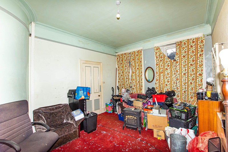 Carpet has been laid to the floor and two windows face the front elevation. The room benefits from a featured papered wall, pendant light fitting and a fire with tiled surround. There is also feature coving, a dado rail and a storage cupboard.