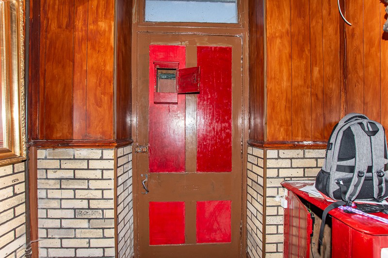 Accessed via a wooden door with exposed wood floor, the vestibule has a pendant light fitting, wooden cladding to half height and a storage cupboard. The fuse box is housed within this room.