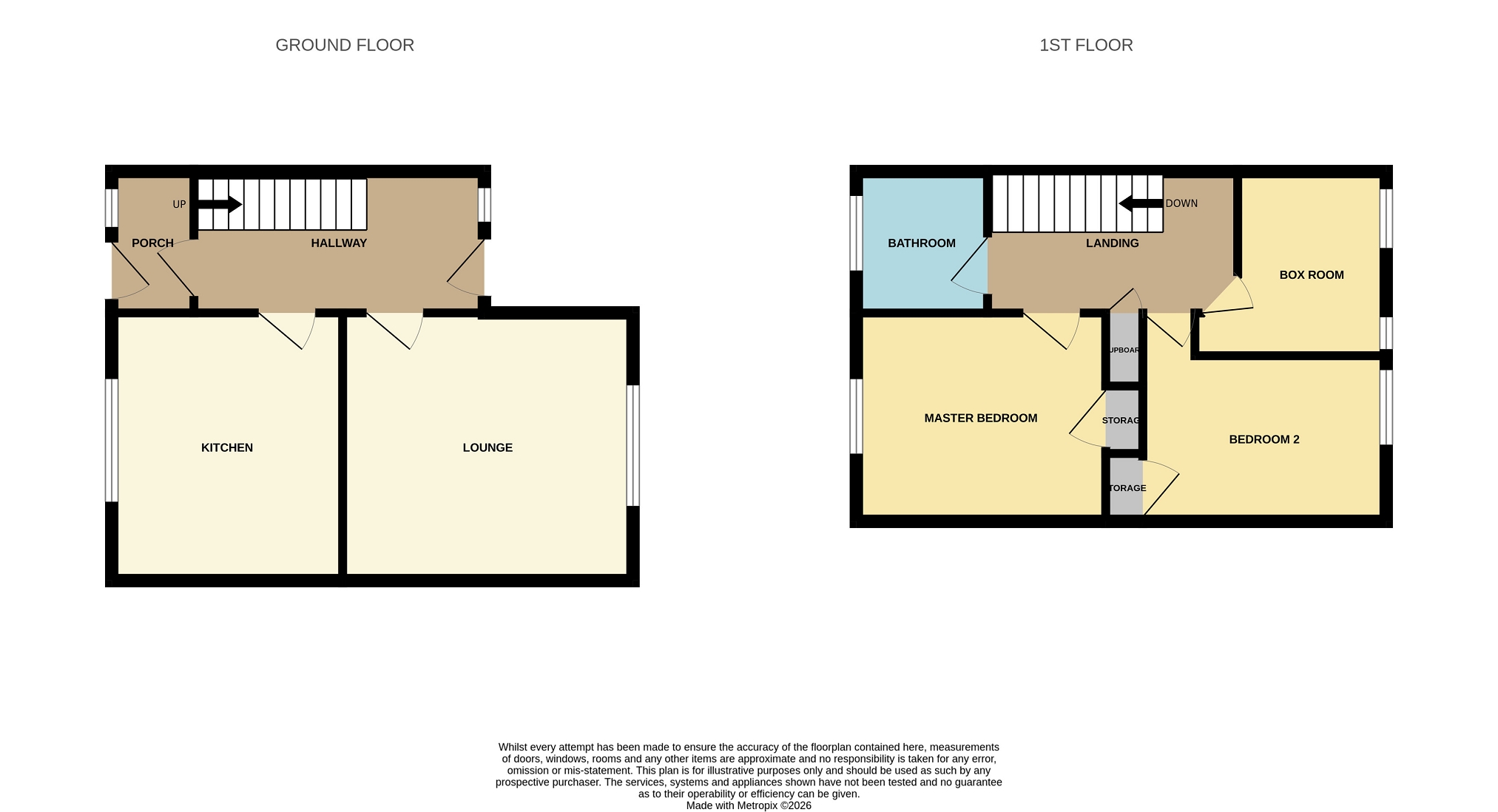 The property is entered via a welcoming hallway with useful understairs storage and staircase to the first floor. The spacious lounge enjoys a large window to the front elevation, allowing excellent natural light to flood the room. The well-appointed kitchen is fitted with wooden wall and base units, complementary worktops and integrated cooker, with ample space for additional white goods. A rear porch provides access to the rear garden and also houses the combi gas boiler, installed in 2022.