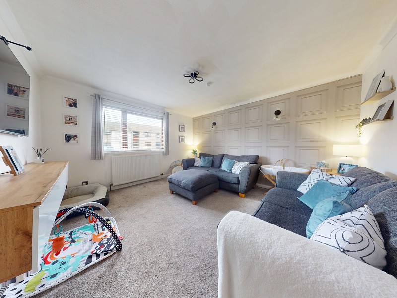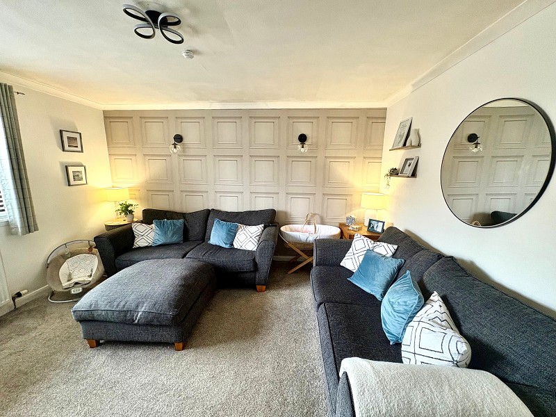 This bright and spacious lounge benefits from papered walls and a feature papered wall with wall lights. There are two central heating radiators to the walls, and the flooring has been laid to carpet. There is a window to the front elevation that lets in a lot of natural daylight, and above, a light fitting and smoke detector can be found. This room has ample power points as well as an internet point.