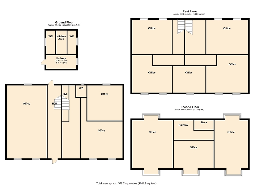 Harbour Terrace retains many period features such as sash and case windows, high ceilings and deep skirtings and door facings. The property is neutrally decorated and painted magnolia throughout. There are 4 well-proportioned offices and two toilets on the ground floor with access through a rear door to an exterior store and a raised rear garden. Two separate staircases lead up to the first-floor mid-landing where there are 2 further toilets and a kitchen whilst the first floor itself has 4 offices. On the second floor there are 3 further offices and a storage cupboard.