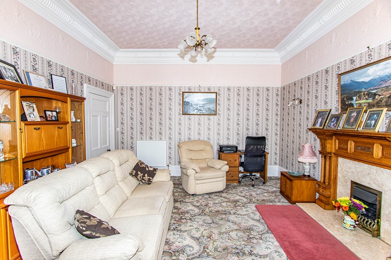 This well-presented room features a bay window with beautiful coving, as well as a dado rail. A carpet has been laid to the floor. There is an attractive white painted fireplace with an enclosed fire with marble hearth and surround. This room benefits from two central heating radiators, a drop down five light fitting as well as double sockets. It's a very bright and welcoming room.