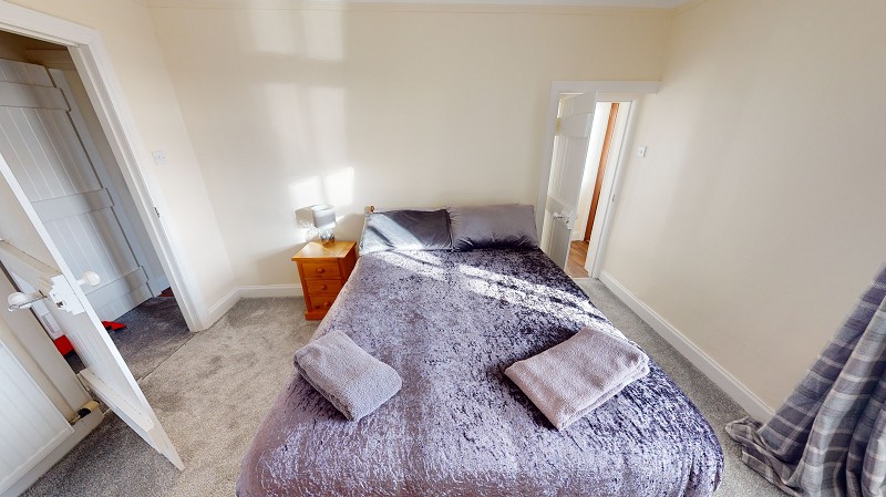 This spacious room is well presented and benefits from a built-in wardrobe with hanging and shelf space. There is a wash hand-basin fitted to the wall, a window faces the front elevation and a carpet is laid to the floor. A door leads into the lobby.