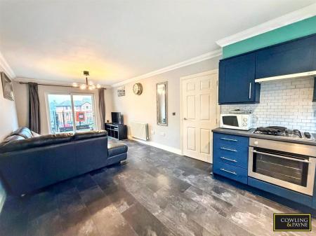 - LOUNGE/KITCHEN/DINER WITH PATIO DOOR LEADING TO SMALL OUTSTIDE SEATING AREA