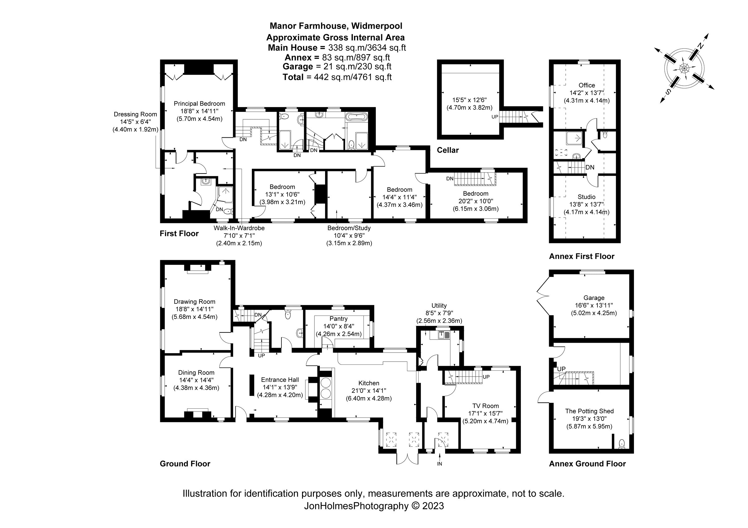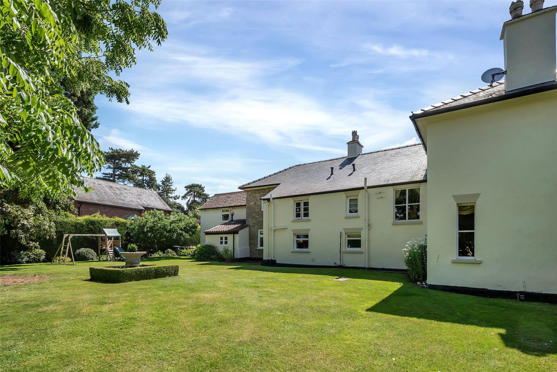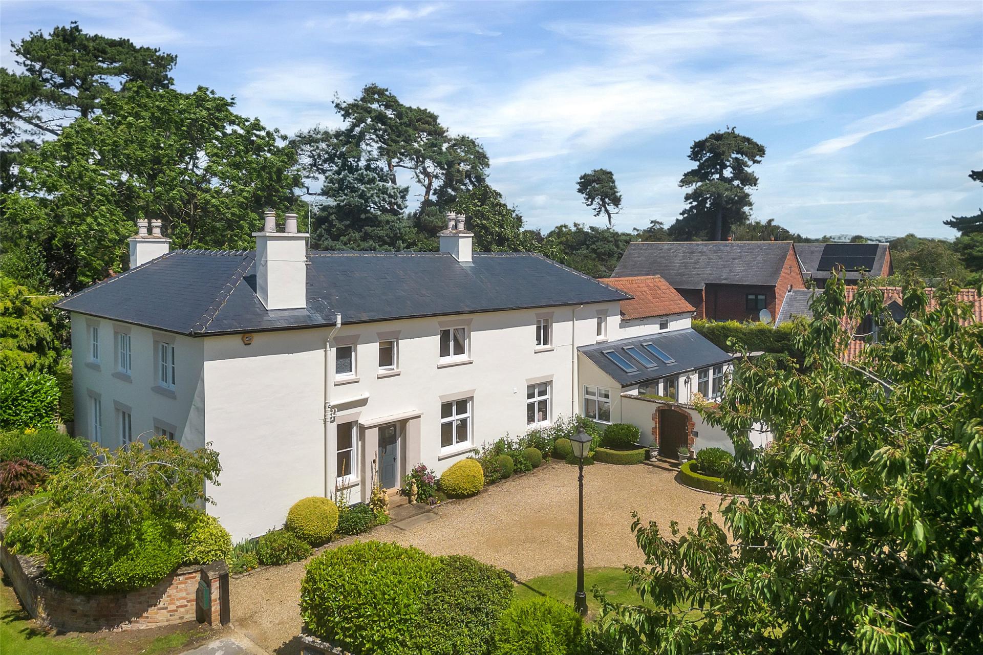 A stunning, spacious period residence offering flexible internal accommodation, retaining many original character features on a plot extending to approximately 0.5 acres. In addition, the property offers skillfully recrafted and extended accommodation offering potential multi-generational addition over the garage creating an annex or potential Airbnb. The property has central heating and predominately double glazing with accommodation comprising a most impressive original hallway, downstairs cloakroom, useful cellar storage, drawing room, dining room, farmhouse style kitchen with built-in Aga, pantry, utility room and rear hallway leading to TV room with second staircase to first floor. On the first floor of the main house there is access to a principal bedroom with dressing room and en-suite shower room, three further generous bedrooms, separate shower room and principal bathroom. Outside the property is well set back from the road with sweeping front gravelled driveway, further double gates and pedestrian gate leading to extensive courtyard garden which in turn leads to the annex/garaging with a double garage, potting shed, hall with stairs to first floor leading to potentially two bedrooms or sitting rooms with separate shower room and WC. The property has private enclosed gardens laid mainly to lawn with patio areas, mature trees and hedgerows, offering a high degree of general privacy. A beautifully presented and spacious period residence having been retained in the current family for over 27 years and now offered to the open market.