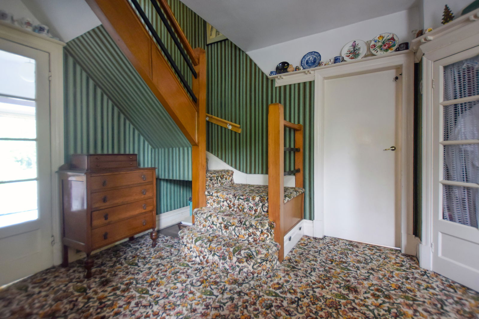The house itself is replete with architectural charm and potential, welcoming visitors into a spacious environment that blends classic features with the prospect of modern innovation. Each of the four bedrooms boasts generous dimensions, providing a private and tranquil retreat for family members. The living spaces, including a substantial living room and a formal dining room, offer versatile areas for entertainment, relaxation, and family gatherings. These communal areas are complemented by large windows that not only flood the interiors with natural light but also provide enchanting views of the surrounding gardens.