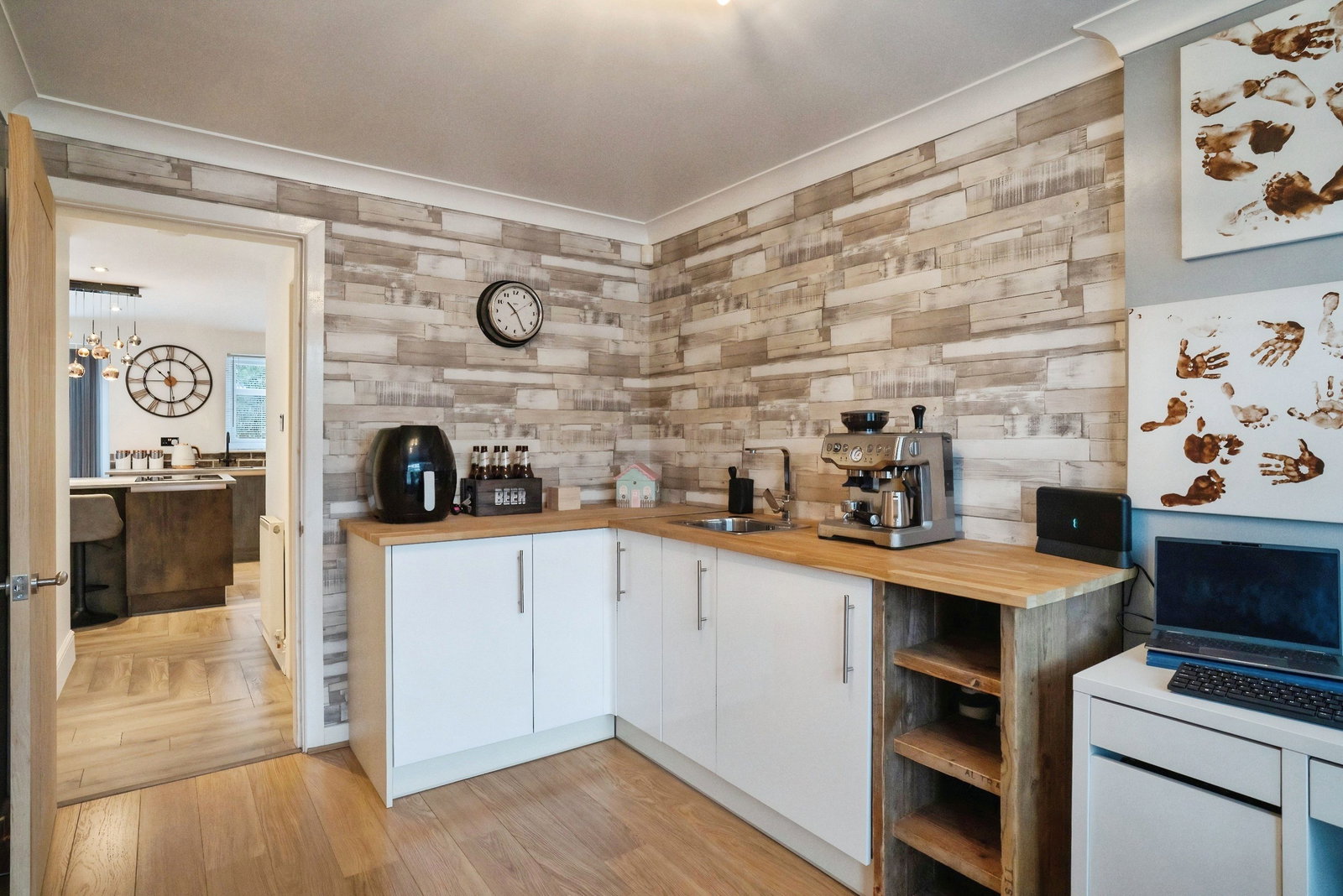 Step inside to discover a welcoming entrance that leads to two reception rooms, providing flexible spaces for relaxation, formal dining, or a home office. The heart of this home is undoubtedly the stunning kitchen, designed with both aesthetics and functionality in mind, perfect for culinary enthusiasts and entertaining.