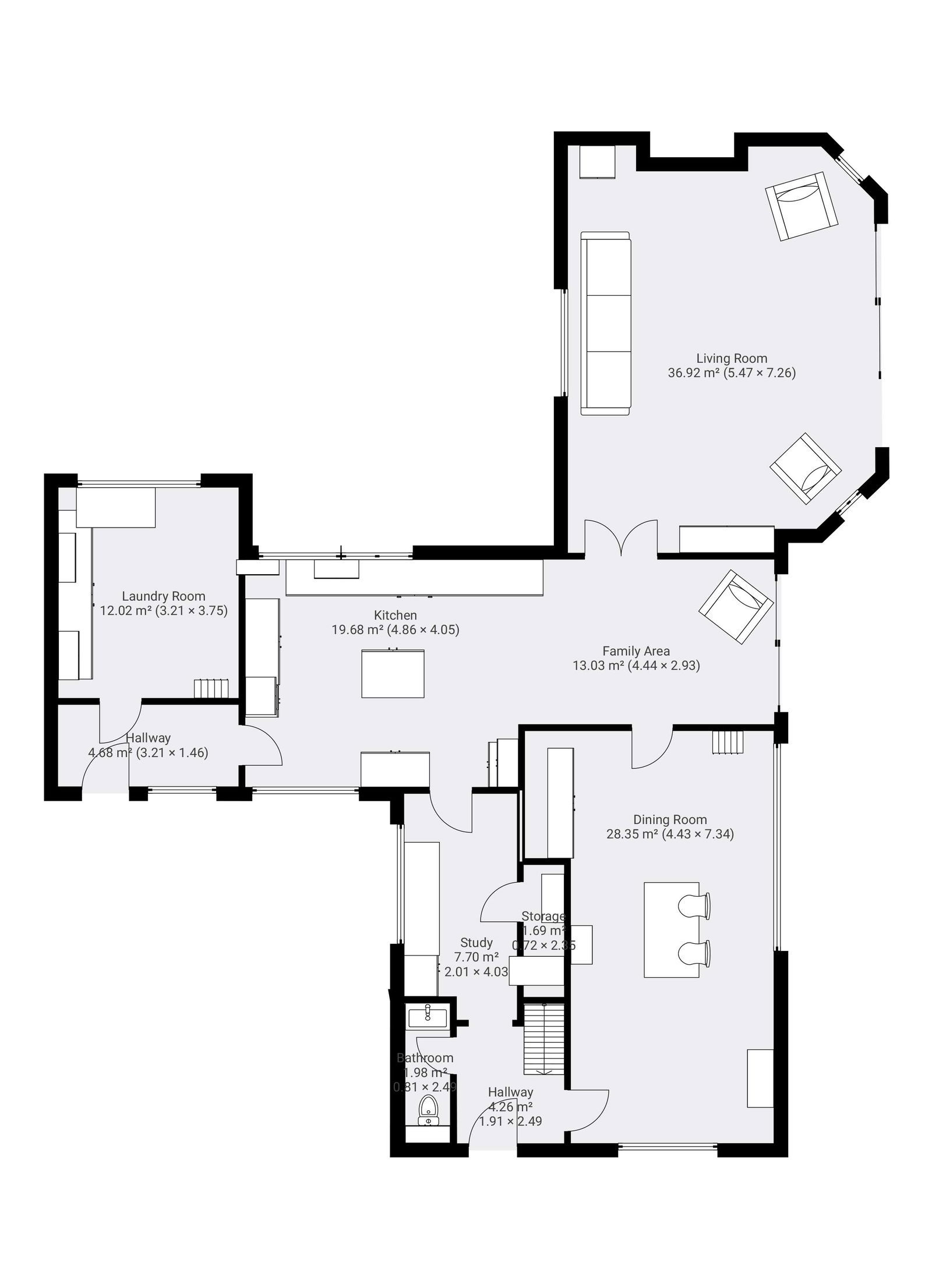 Spacious accommodation briefly comprises; large lounge with stone fireplace and log burner. French doors opening onto large south facing garden . Reception room with large picture window . Large bespoke kitchen/ diner with central island and integral appliances. Large utility room and porch. Office and downstairs cloakroom.