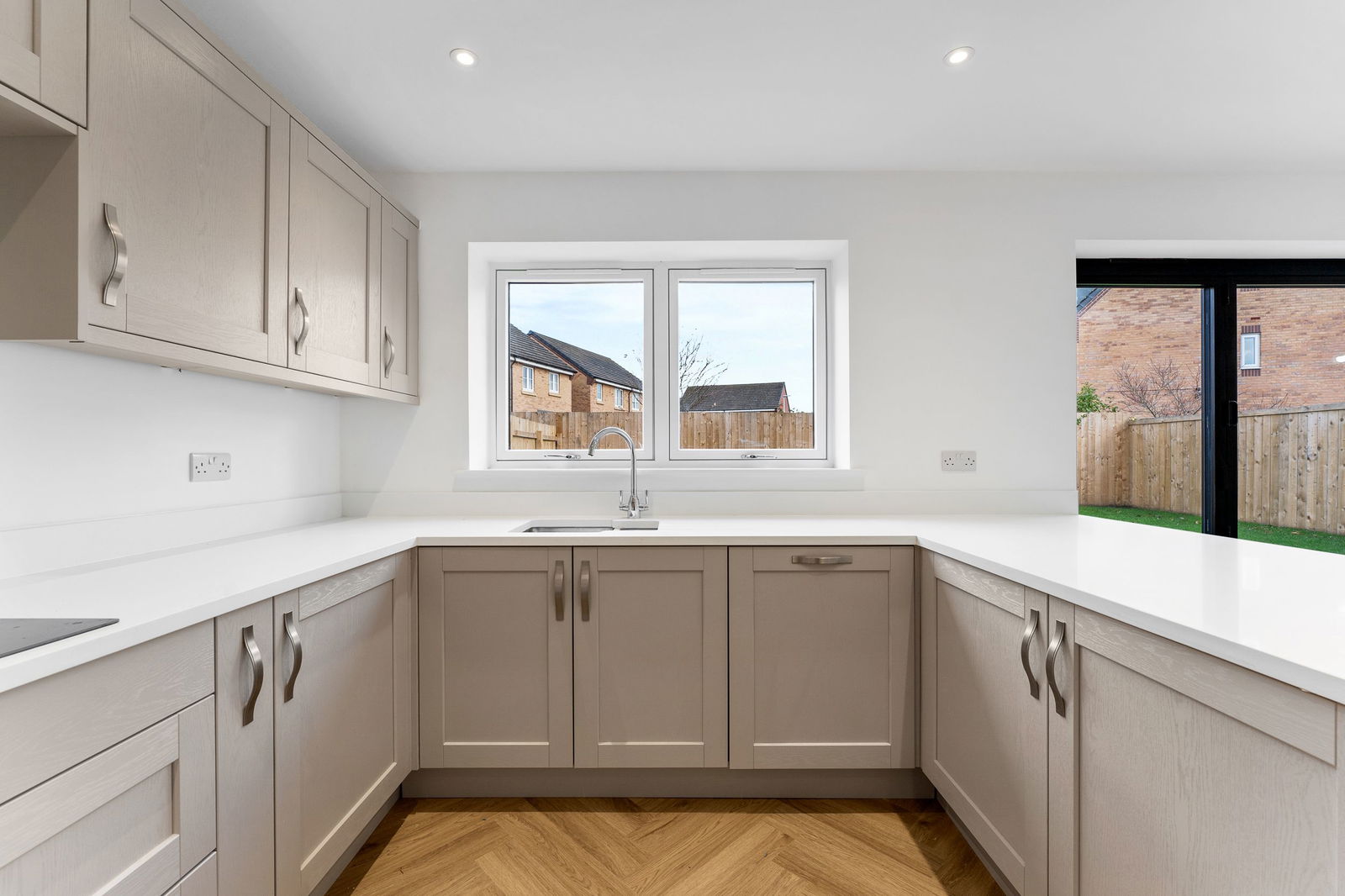 5/ Kitchen appliances all fitted in kitchens & including downlighter to kitchen