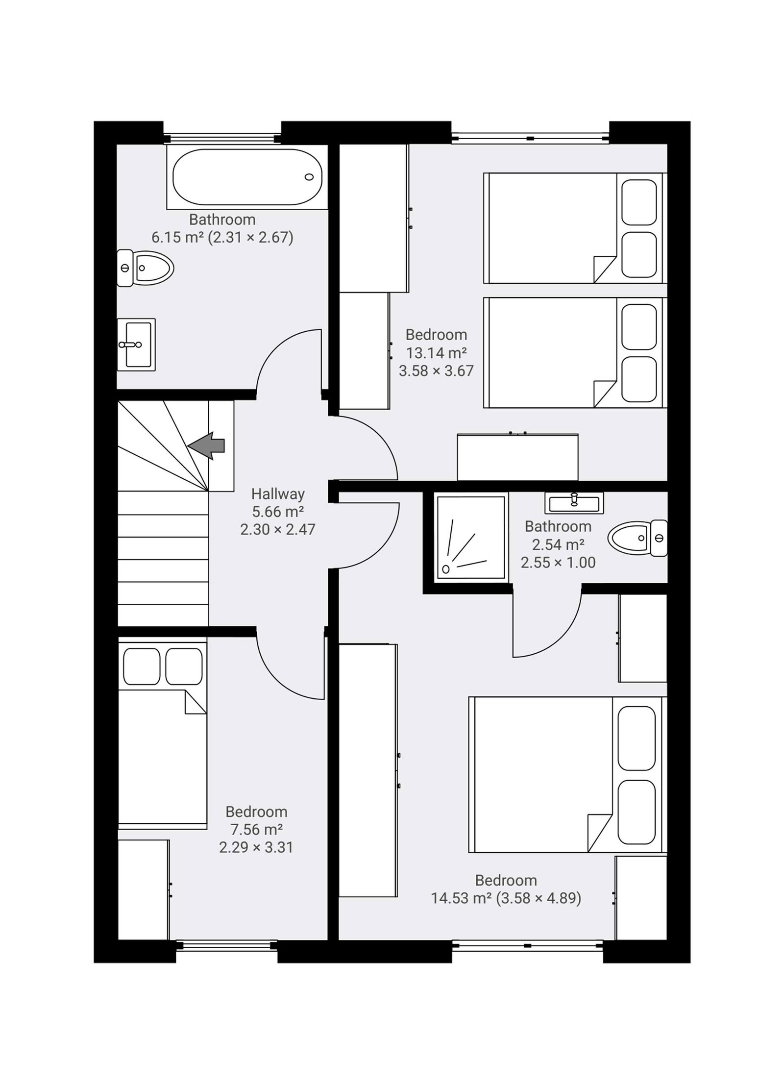 - Three Double Bedrooms