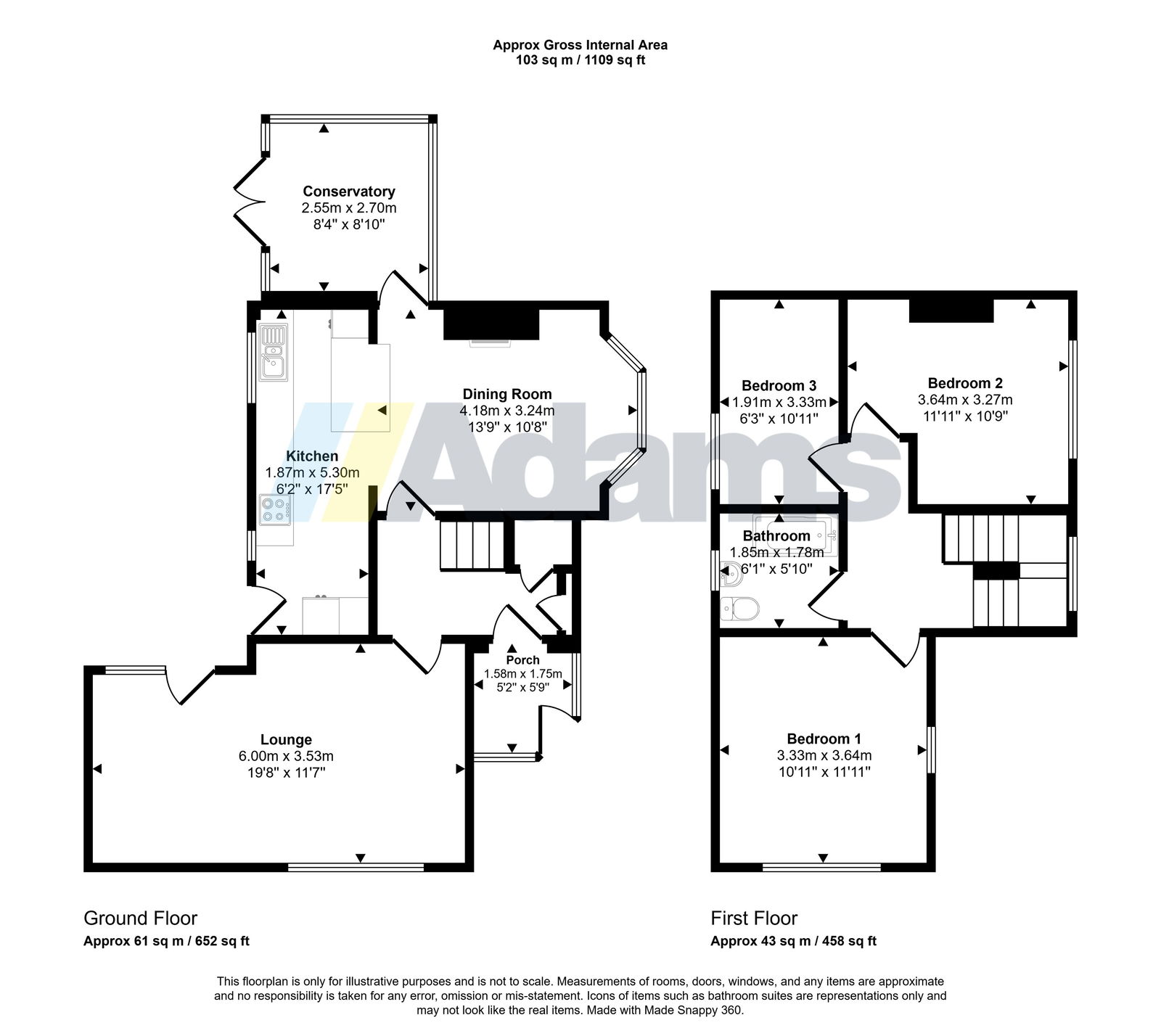 The first floor features three well-proportioned bedrooms, providing comfortable accommodation. A family bathroom completes the upstairs layout.