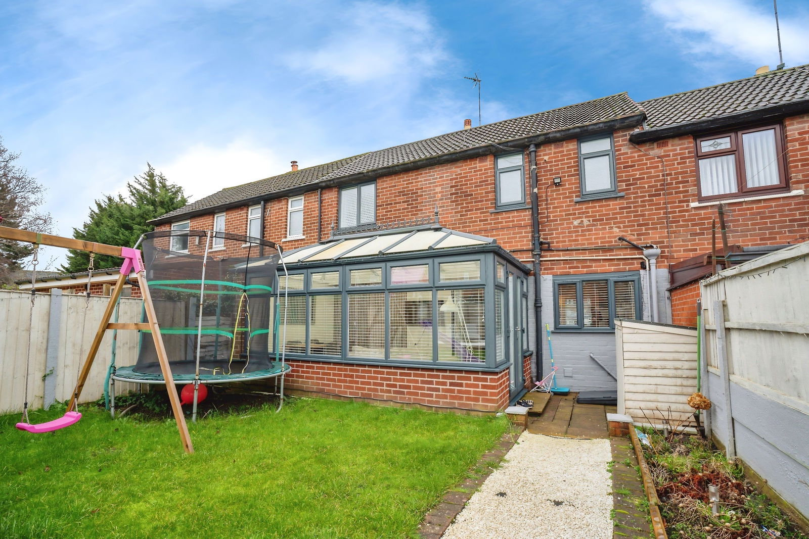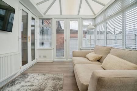 Upon entering, a welcoming hallway leads to a generous lounge, providing an inviting space to relax. The impressive kitchen, complete with integrated appliances, forms the heart of the home and connects seamlessly to a bright conservatory, offering additional versatile living space and a pleasant outlook onto the garden.