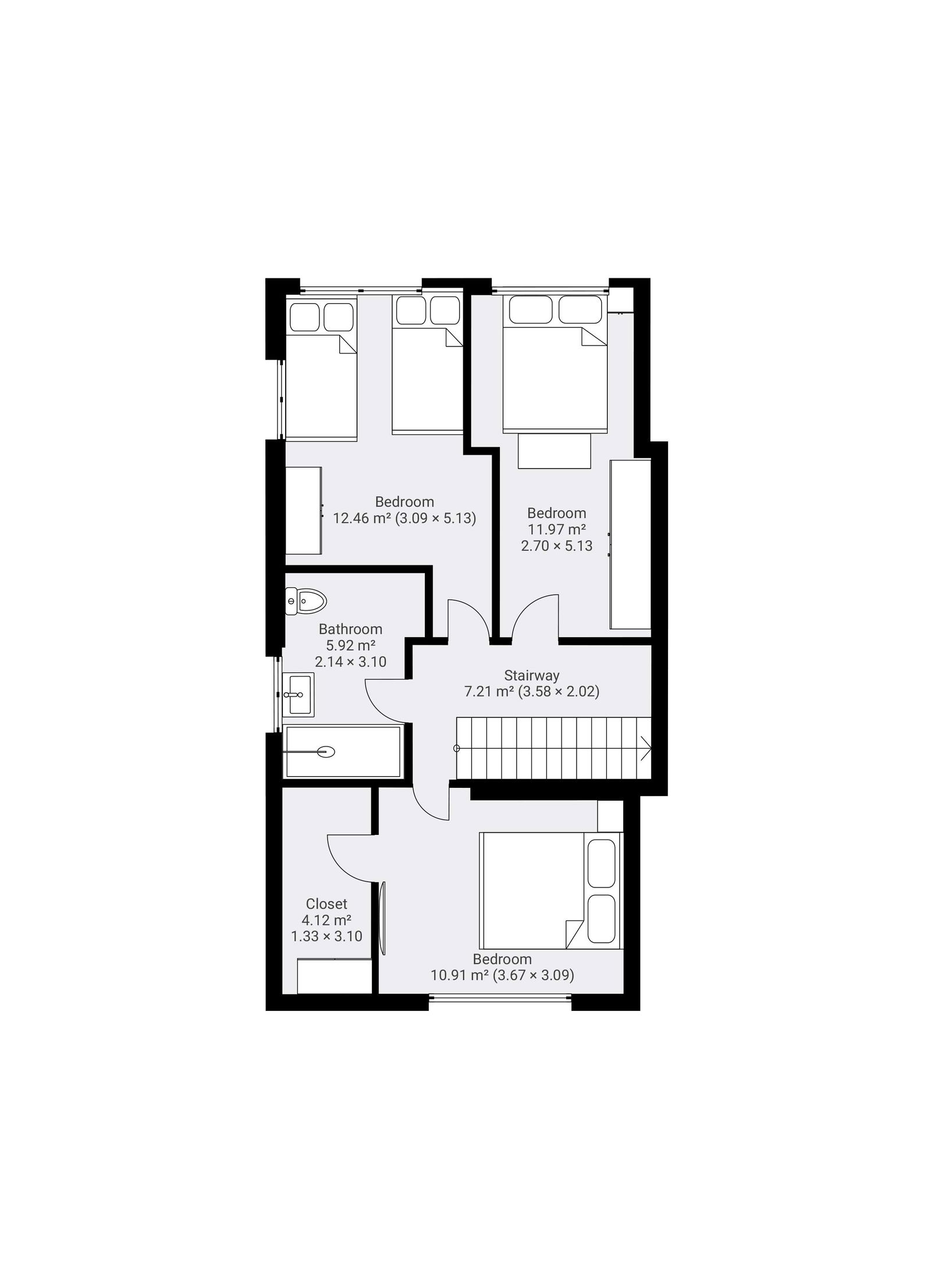 - Three Double Bedrooms