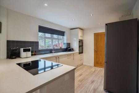 Upon entering, you are greeted by a welcoming ambience that flows throughout the home. The ground floor boasts well-proportioned reception rooms, providing flexible spaces for relaxation, formal dining, or a dedicated home office. The heart of the home is an impressive open-plan kitchen/diner/family room, designed for both everyday living and entertaining, featuring ample space for culinary creations and social gatherings. Useful utility room and cloaks.