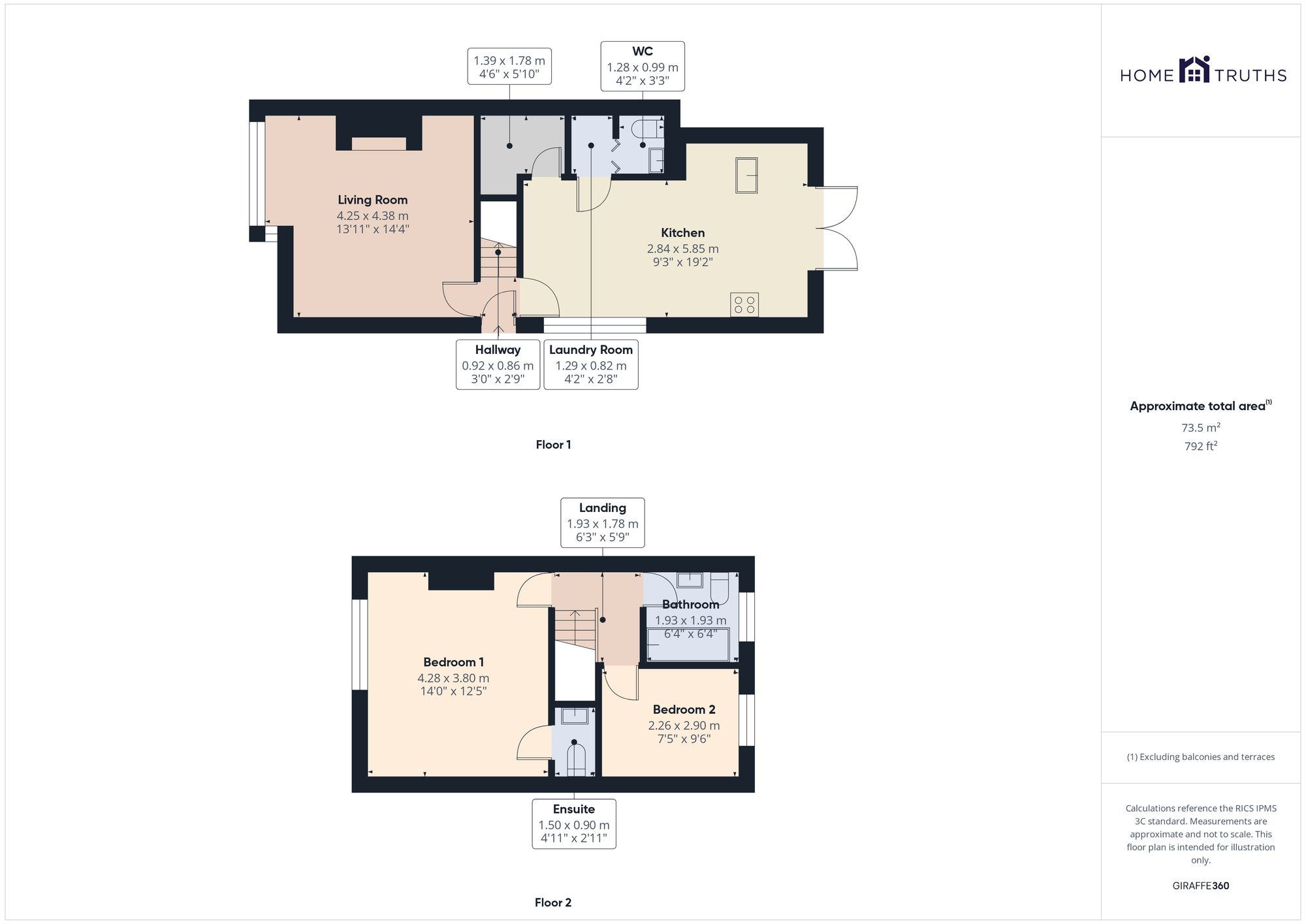 Back inside, stairs lead to the first floor landing with bedroom one to the front having en suite comprising wc and wash hand basin, bedroom two a second double to the rear and the bathroom comprising fully tiled elevations and flooring, bath with screen and rainfall mixer shower over, wc and wash hand basin.