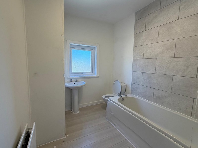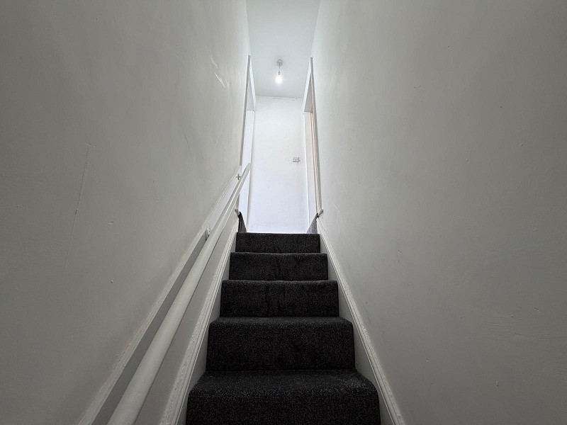 To the first floor, the property offers a spacious layout, with a generous master bedroom positioned to the left, benefiting from ample natural light and comfortable proportions. To the right, a further landing leads to a second bedroom and a modern, well-appointed family bathroom. Externally, the property enjoys a low-maintenance rear yard, perfect for outdoor seating, along with a small front garden.
