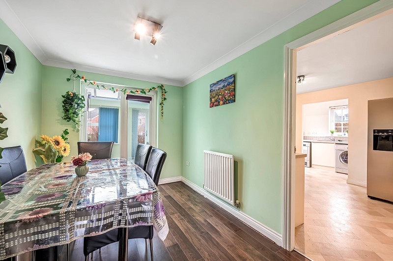 Upon entering, you are welcomed by a bright and inviting entrance hall that sets the tone for the rest of the home. The ground floor has been arranged to maximise natural light and connectivity between rooms. To the front sits a well-proportioned lounge, a warm and comfortable space ideal for everyday relaxation. This leads seamlessly through to the open-plan dining room, creating an excellent area for entertaining and family gatherings.