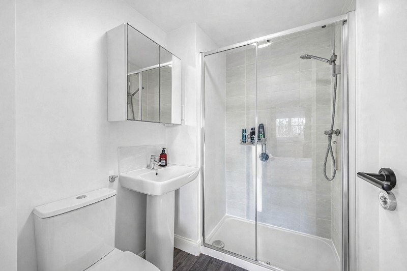 Rising to the second floor, you will find two further well-proportioned bedrooms, both benefiting from built-in storage, alongside a stylish family bathroom suite finished with modern fittings and clean lines.
