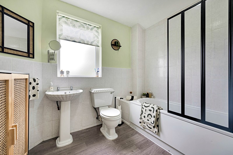 Upstairs, the property boasts three well-proportioned bedrooms, each decorated to the same high standard as the rest of the home, creating a cohesive and charming aesthetic throughout. The family bathroom suite completes the upstairs layout, offering a clean, contemporary space for relaxation.