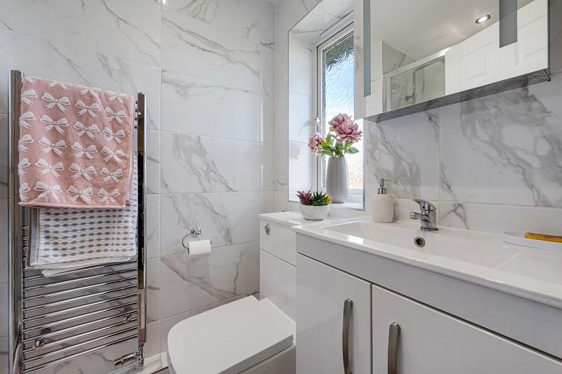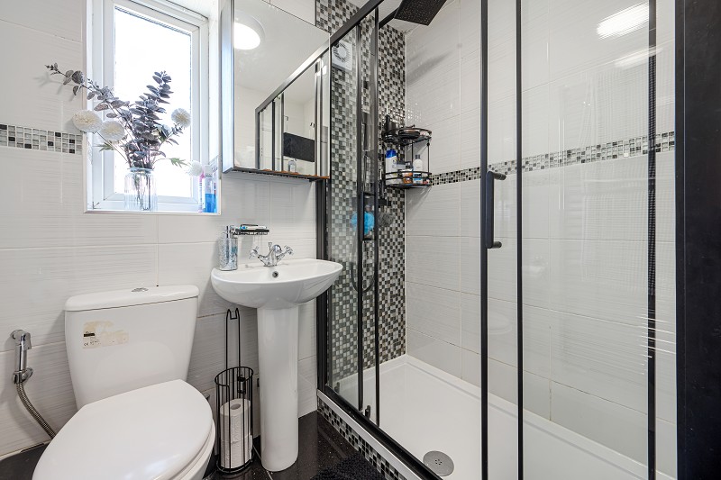 The first floor hosts four generously sized double bedrooms, all well-presented and comfortable. The main bedroom benefits from its own en suite shower facilities, while a contemporary family bathroom caters to the remaining rooms.