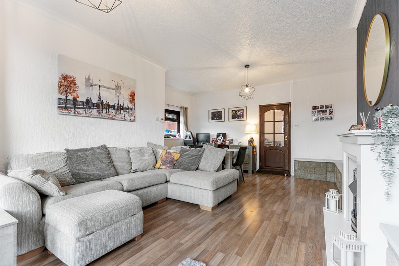 This home features a pleasant spacious living room with dining space, perfect for relaxing or entertaining. A well-appointed fitted kitchen is situated at the rear overlooking the private garden.