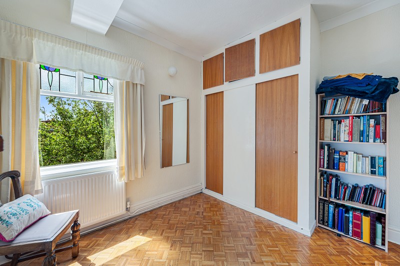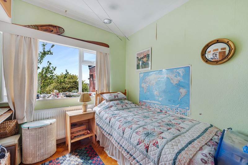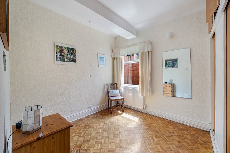 The home offers three well-proportioned bedrooms. The master bedroom, situated at the front of the property, mirrors the living room's dimensions and features a bay window, making it a spacious and bright retreat. The second and third bedrooms are located to the rear, both with built-in wardrobes. The modern shower room is conveniently positioned close to the bedrooms and is complemented by a separate WC, providing practicality for everyday living.