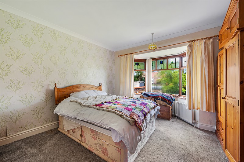 Internally, the bungalow features a generous and well-balanced layout. The main entrance opens into a wide hall, which leads through to the formal living areas. At the front of the property is a bright and welcoming living room, with dual aspect windows inclusive of a large bay window flooding the room with natural light. Adjacent to the living room is the equally spacious dining room, which connects conveniently to the kitchen at the rear. The fitted kitchen overlooks the rear garden and provides direct access to the outside, offering excellent potential for a stylish and functional modern update.