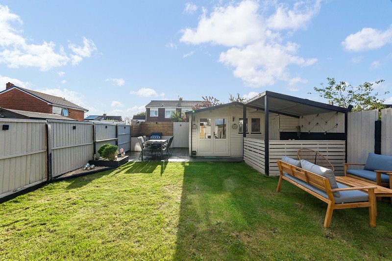 Step outside to a generous garden featuring a stylish summerhouse, currently styled as a pub but easily adaptable as an office or gym.