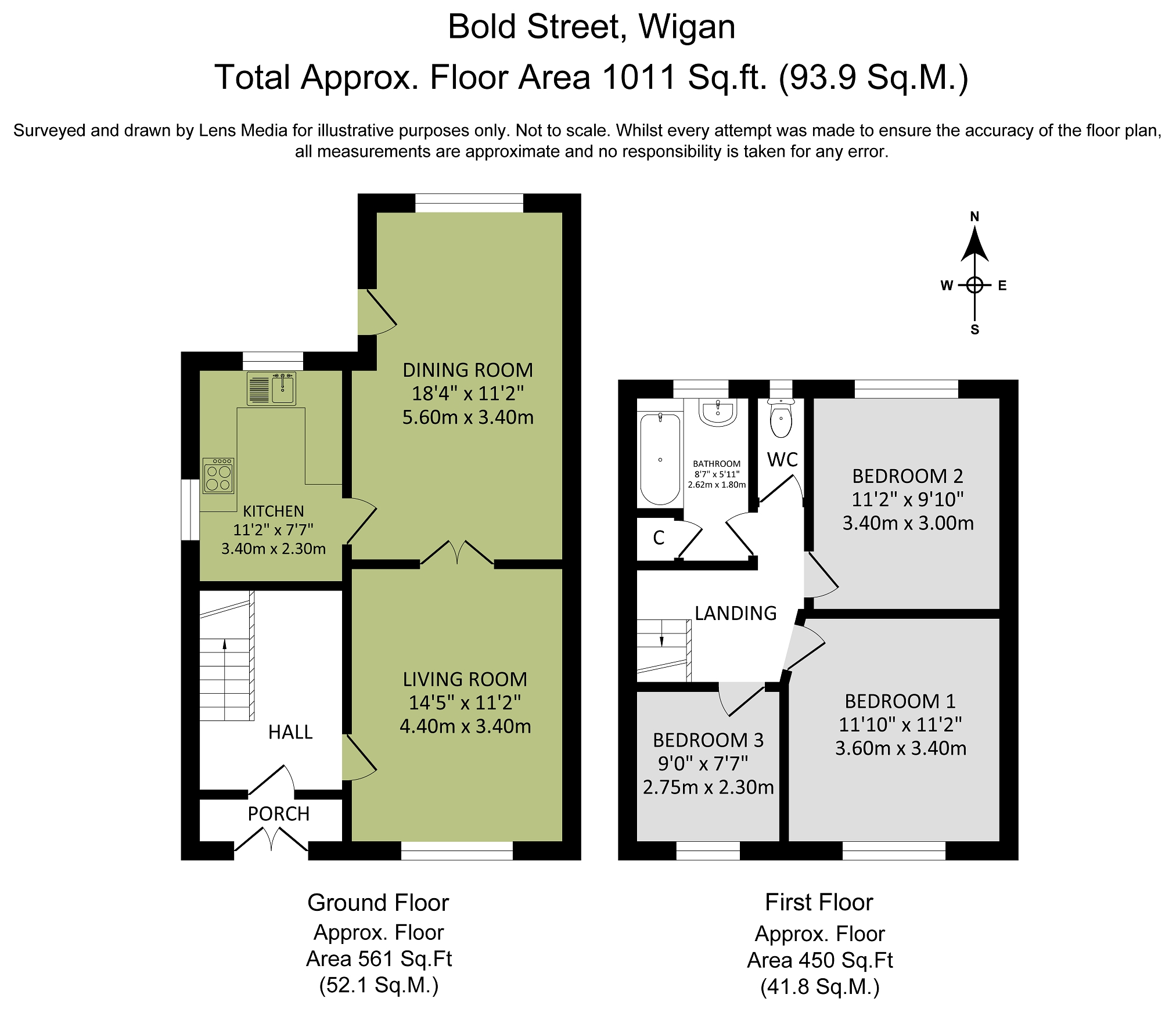 Upstairs, the property boasts three well-proportioned bedrooms and a family bathroom with separate WC. Additionally, the loft has a drop down ladder and is partially boarded for extra storage.