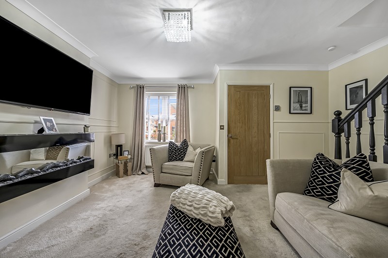 Upon entering the property, you are welcomed by an entrance hallway with a ground floor WC, providing added convenience to everyday living. Leading through to a bright and inviting living room, tastefully decorated in contemporary cream tones and laid with luxurious cream carpets, this generous reception space offers the perfect setting for relaxing evenings or entertaining guests.
