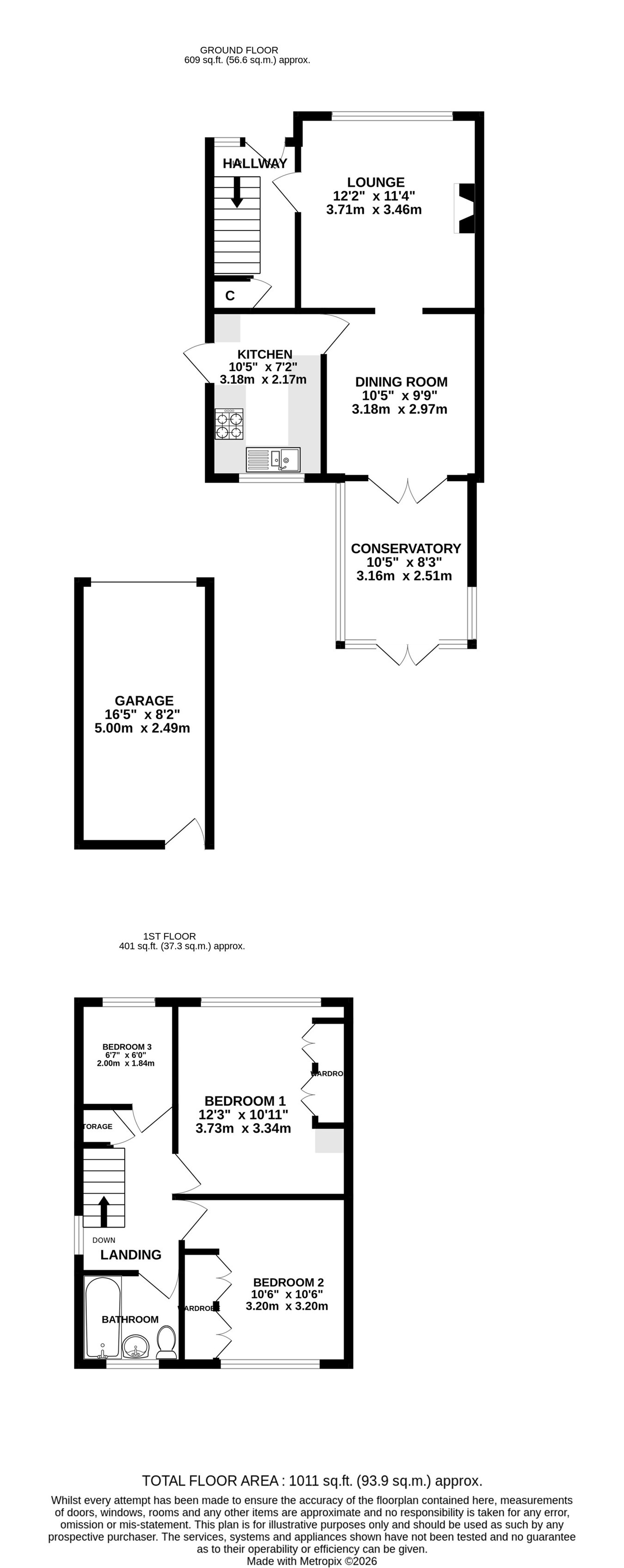 12' 3" x 10' 11" (3.73m x 3.33m)