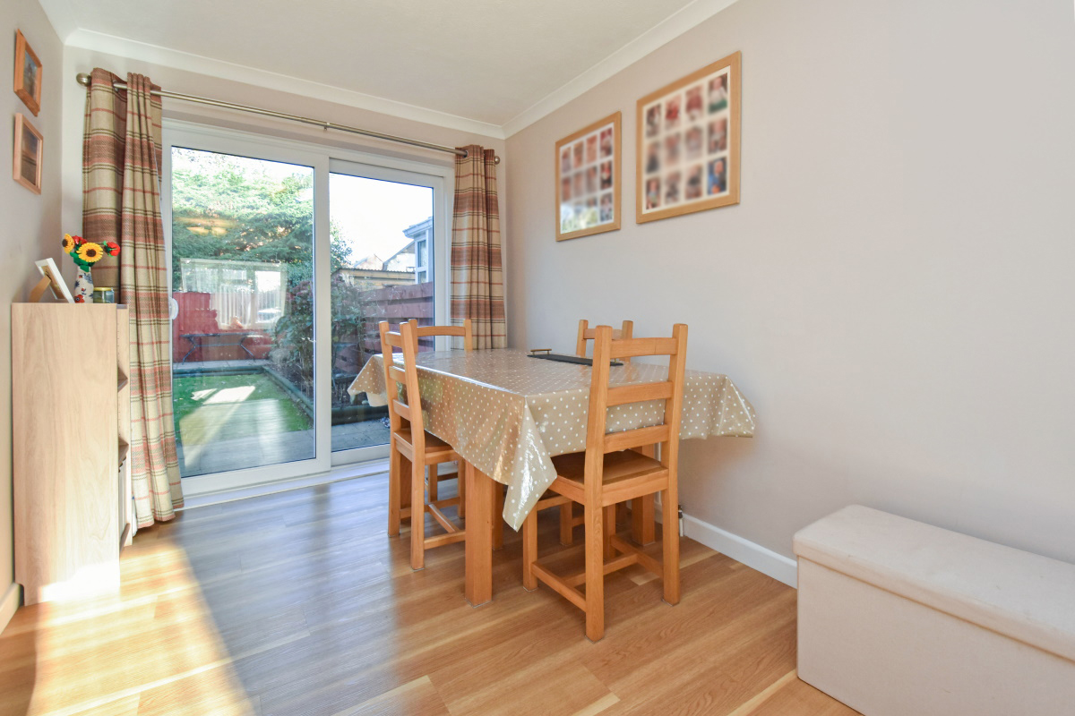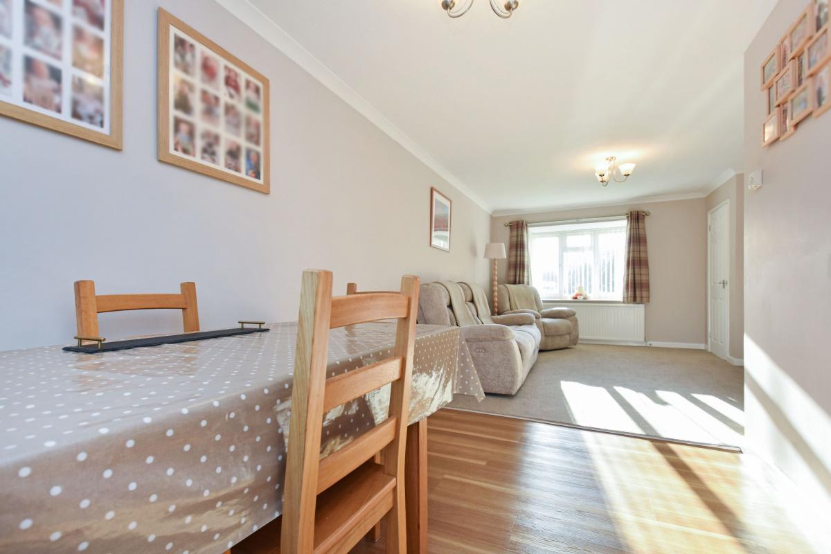 Sitting/Dining Room a lovely bright and spacious “through” room with box bay window to the front and sliding patio doors to the rear, two radiators, Sitting Area being carpeted and timber effect flooring to the Dining Area.