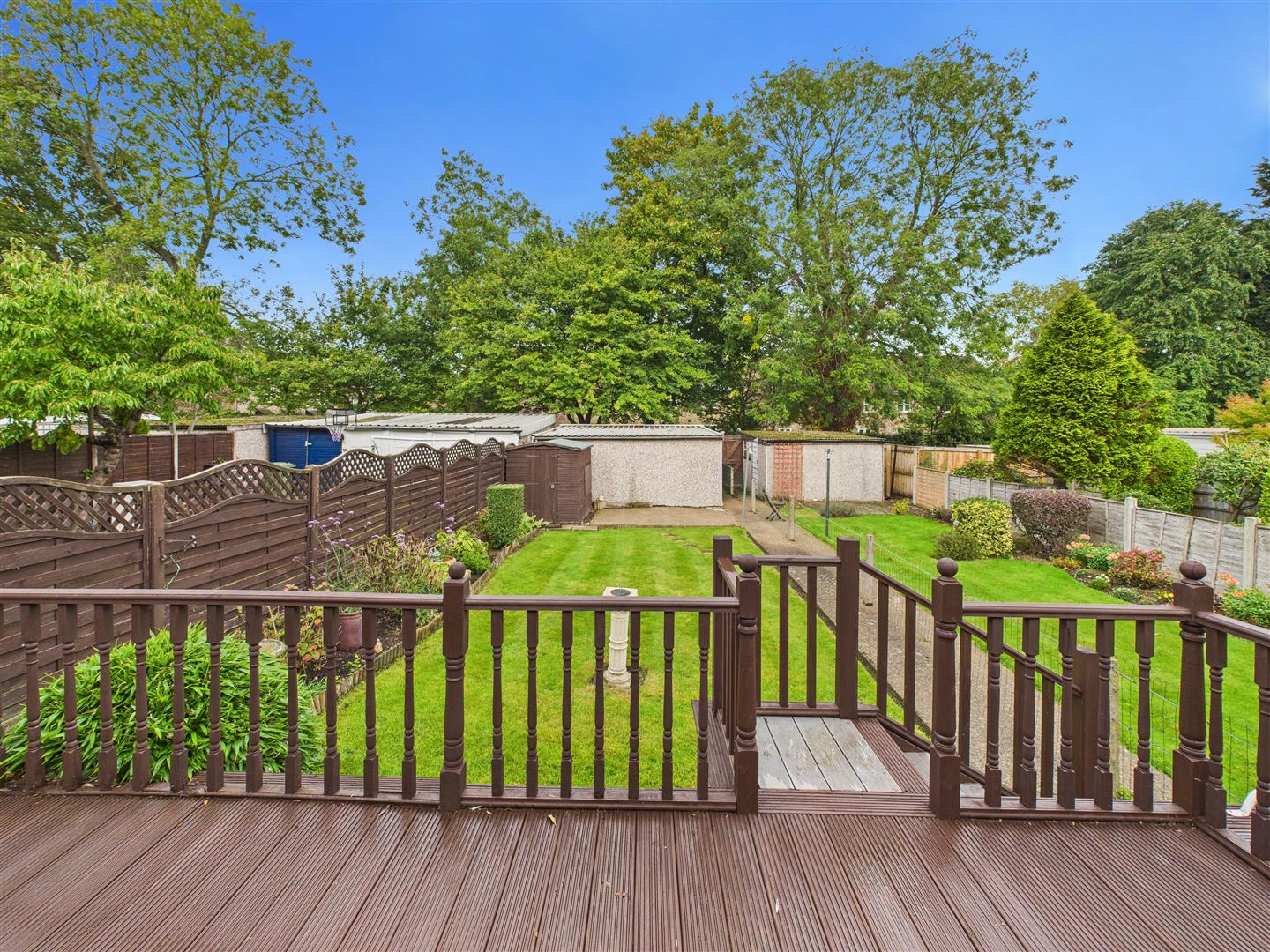 Outside - A paved garden extends to the front with a brick perimeter wall and a gate to the footpath. The good sized rear garden incorporates a large paved terrace with lawn beyond and attractive borders. There is hard standing, shed and a particular feature is the double garage accessed via a rear tenfoot.