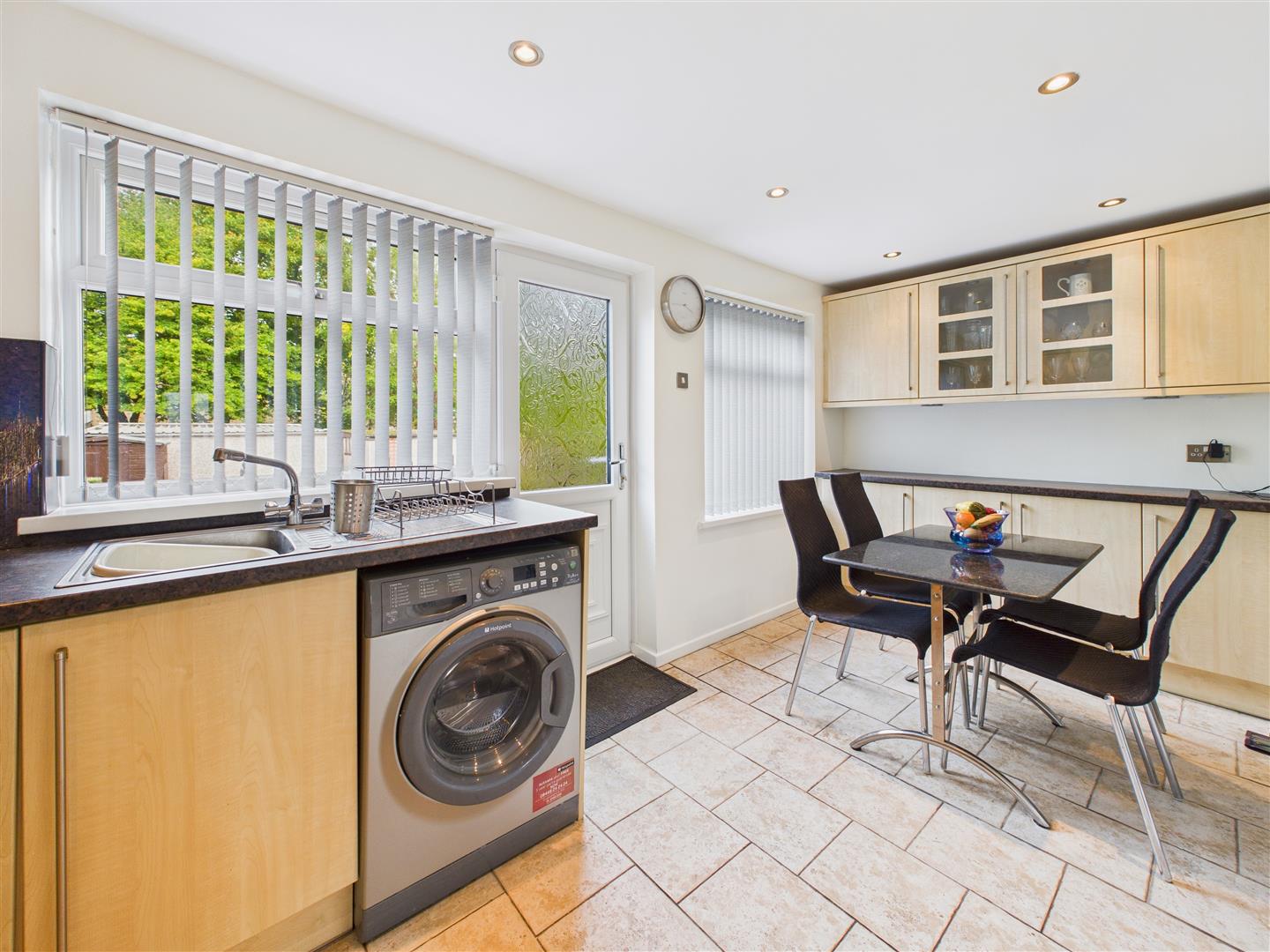 Dining Kitchen - Accessed also from the hallway. There is an extensive range of fitted base and wall units with work surfaces, integrated double oven and microwave above, four ring gas hob, stainless steel back and extractor over, dishwasher, plumbing for automatic washing machine. Tiled flooring, windows to rear and external access door out to the decked patio.