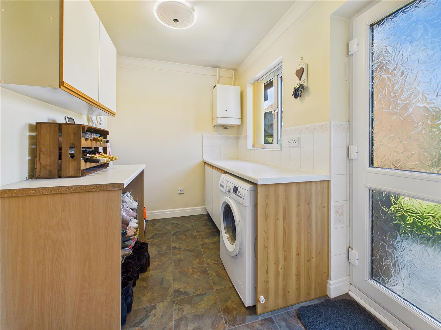 Utility - With fitted worksurfaces and plumbing for a washing machine underneath. There is a door leading into the attached garage, and a door opening out to the rear garden.