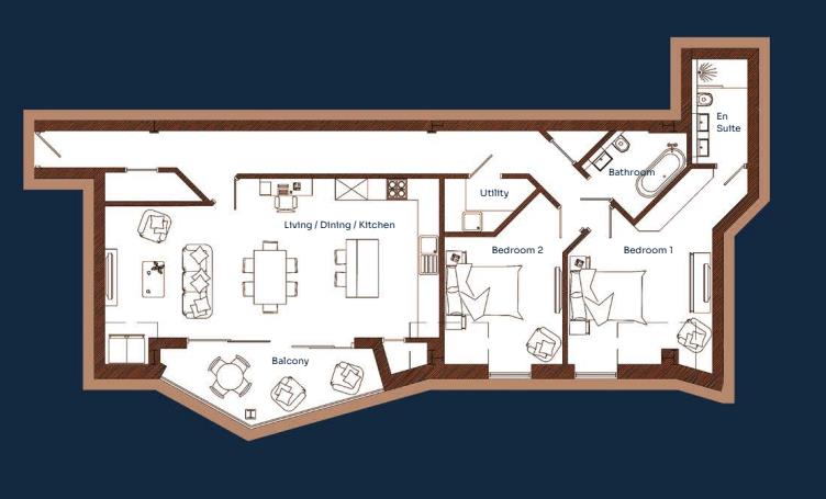 - Stunning two-bedroom penthouse waterfront apartment