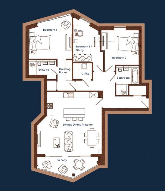 - Breathtaking three-bedroom penthouse waterfront apartment