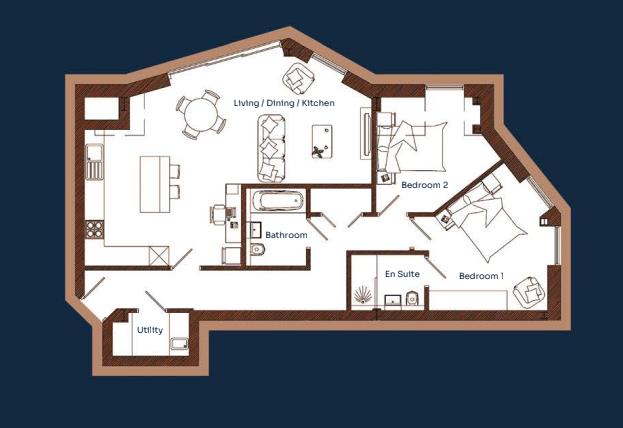 - South Facing, Two Bedroom, Penthouse Apartment with views towards the Trent and Mersey Canal