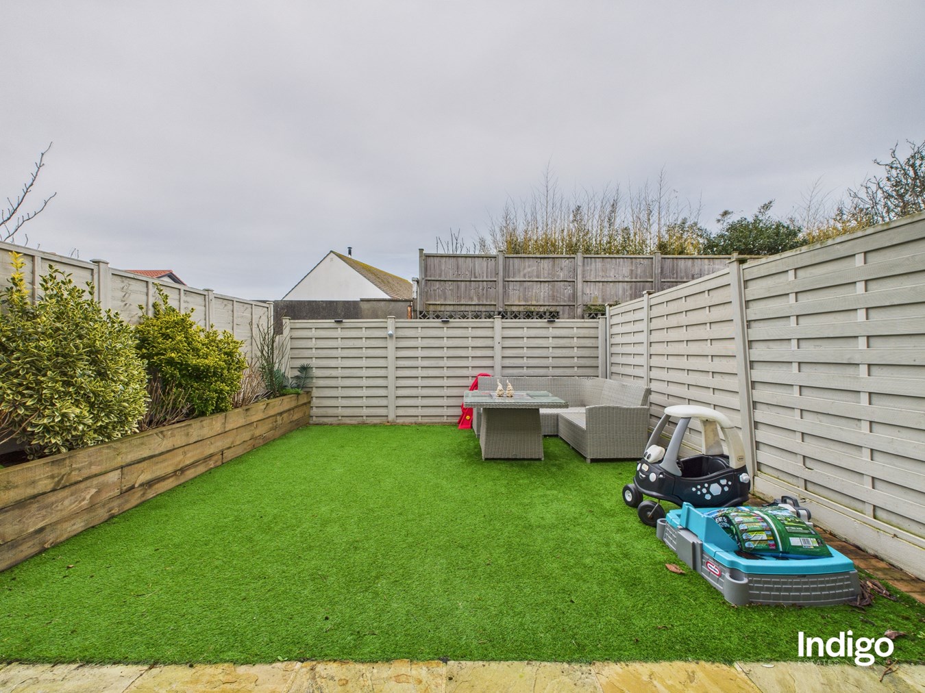 - Enclosed low maintenance garden