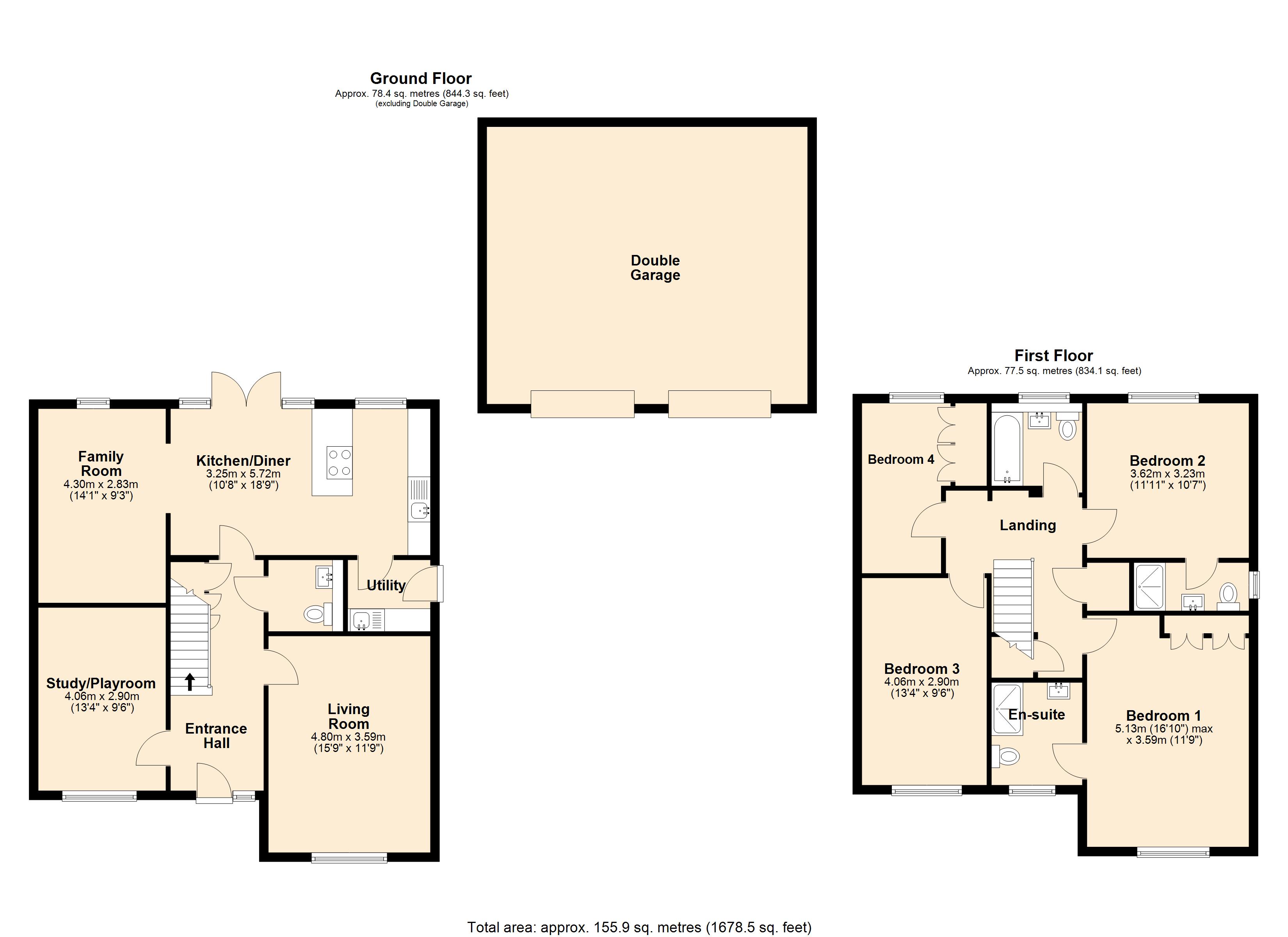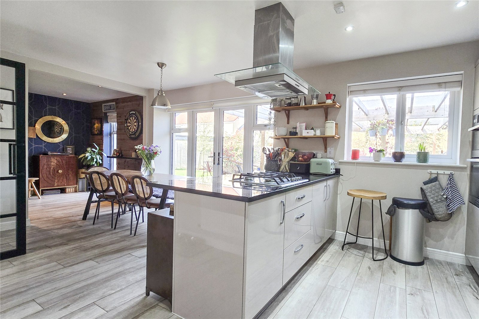 Once inside you will discover; an inviting entrance hall which has an excellent level of bespoke built in storage. An impressive living room, versatile study/playroom perfect if you work from home. There is a stunning open plan kitchen/dining/family room with French doors opening directly onto the garden, helping to bring the outside in. This wonderful space is the heart of the home, featuring attractive granite work surfaces and a range of built in AEG appliances. Furthermore, on the ground floor, there is an invaluable utility room and a good size cloakroom. Upstairs, there is a delightful family bathroom and four bedrooms, two of which feature ensuite facilities, with the principal bedroom having a luxurious feel, a worthy room for a home of this calibre.